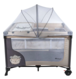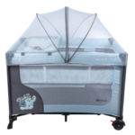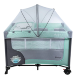 incluye un tul anti-mosquitos de cobertura completa, ideal para proteger al bebé de insectos mientras duerme o descansa, creando un ambiente más seguro y tranquilo. Sus laterales con malla transpirable permiten una correcta ventilación y facilitan que los padres puedan observar al bebé en todo momento.